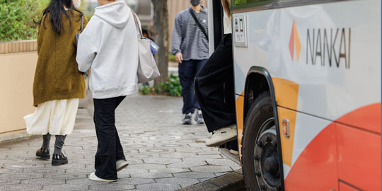 自宅から自転車で最寄り駅まで、そこから電車とスクールバスで大学へ。電車の中では長い通学時間を勉強に充てるなど有効に活用しています。