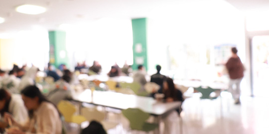 友達と授業やプライベートのことを話しながら、ランチタイムを楽しく過ごしています。