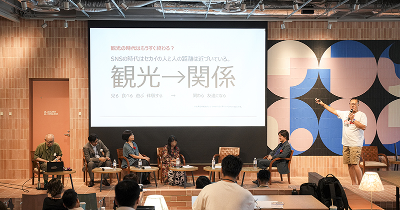 パネルディスカッションには、加藤遼氏に加え、オダギリサトシ氏(株式会社インプリージョン代表取締役)、酒井晶子氏(株式会社aubBiz代表取締役)、小野田真弓氏(「熊野古道」世界遺産登録プロジェクト運営委員代表)、クラブツーリズム株式会社の樋山智彦執行役員の5名が登壇。大阪観光大学の小野田金司特任教授が進行を務めました。 オダギリ氏からはモニターツアーで実施予定の「親子釣り教室」の紹介やふるさとシェア事業の動向、小野田真弓氏からは熊野古道紀伊路に関する活動紹介、酒井氏からはローカルテレワーカーの取り組みと交流実績、樋山氏からはクラブツーリズム会員による地方創生活動の紹介がありました。進行役の小野田特任教授も、過去の熊野古道関連の取組みを交えながら議論を盛り上げました。
