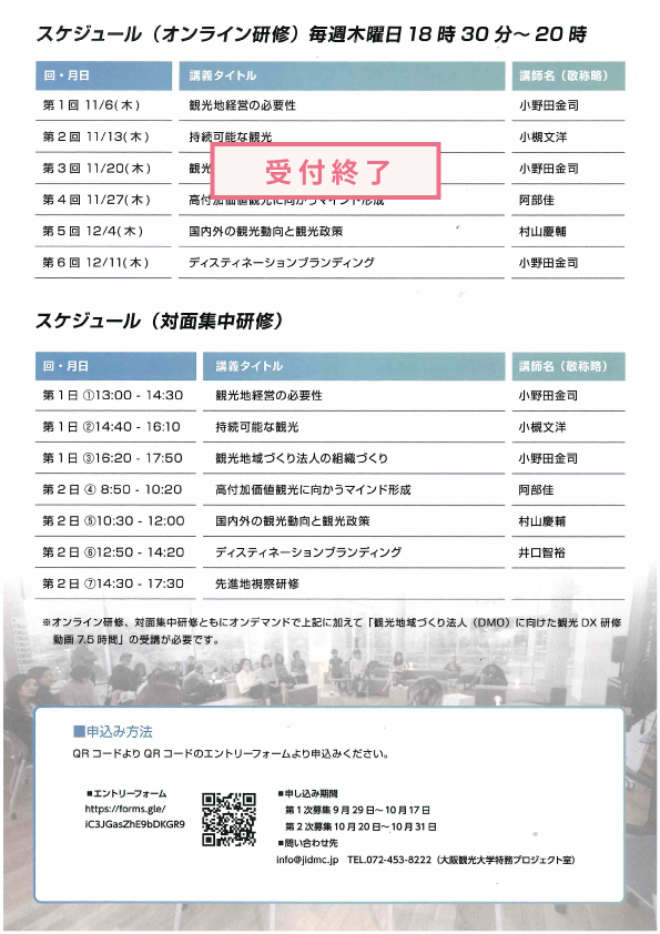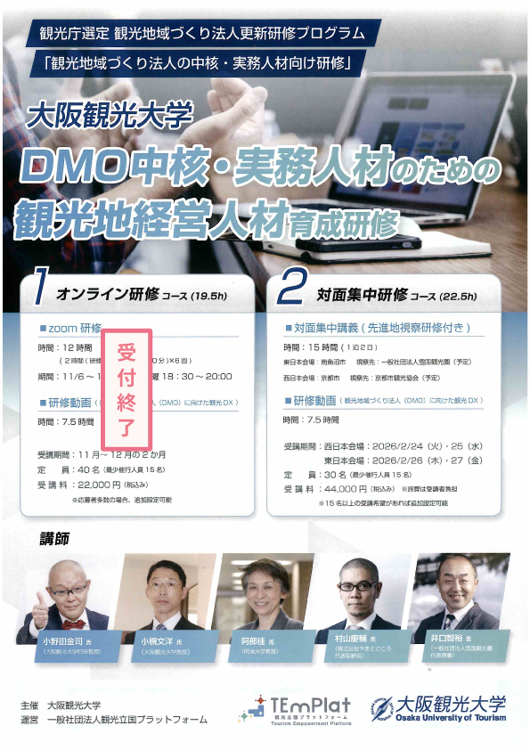 観光庁選定 観光地域づくり法人(DMO)更新研修プログラムのご案内
