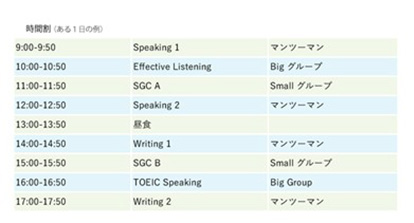Speaking:27時間 Writing:18時間 Group Class:18時間 Effective Listening:9時間