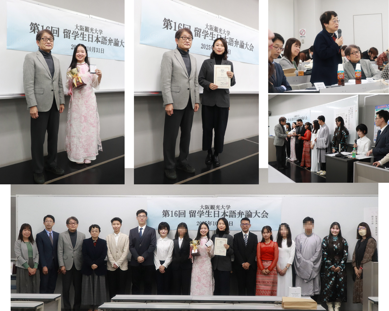 第16回を迎えた「留学生日本語弁論大会」には、3か国から7名の学生が登壇。これまでの学びを結び目のように束ね、それぞれの経験や思いをテーマに日本語でスピーチを披露しました。3名の教員審査員による厳正な審査の結果、各賞受賞者が決定。自身の体験から湧き上がる考えを真っ直ぐに語る姿は、会場に静かな余韻を残しました。