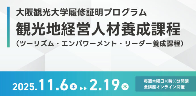 大阪観光大学履修証明プログラム「観光地経営人材養成課程」(ツーリズム・エンパワーメント・リーダー養成課程)開講