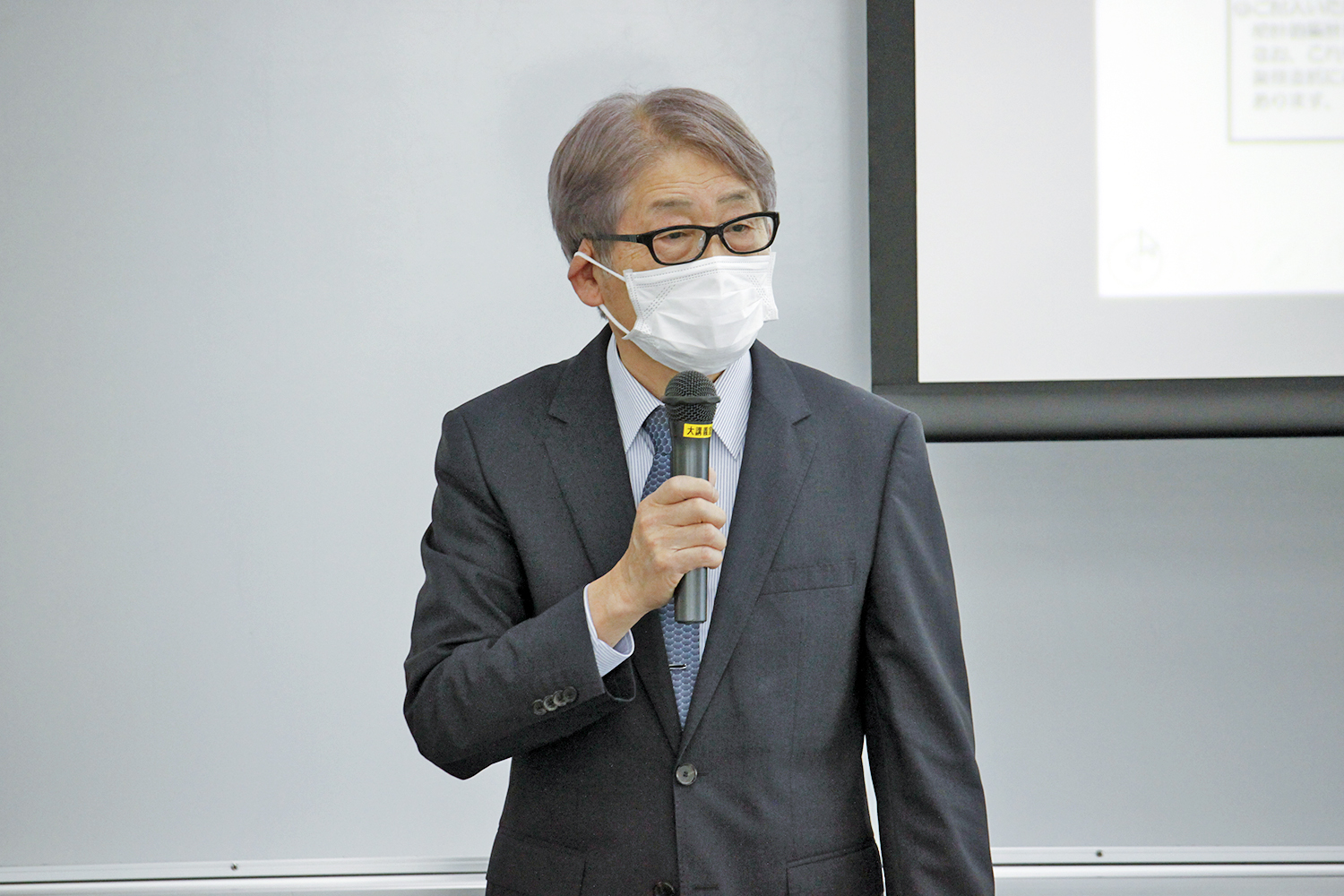 10時30分から始まったプログラムは、学生スタッフ2名の司会進行で、まずは 山田 良治 学長より歓迎のご挨拶をさせていただきました。