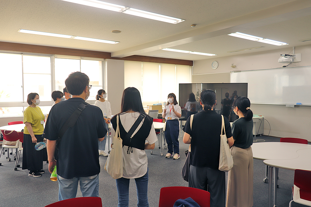 模擬授業が終わると、学生スタッフの案内でスタンプラリーを兼ねたキャンパスツアーへ出発。