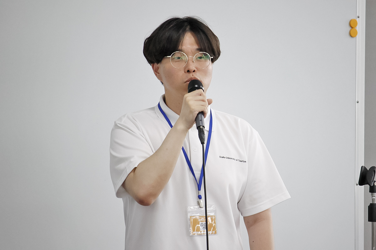 続いて韓国人留学生の 金 載原(キム・ジェウォン) さん(観光学部3年)がプレゼンテーションを行いました。