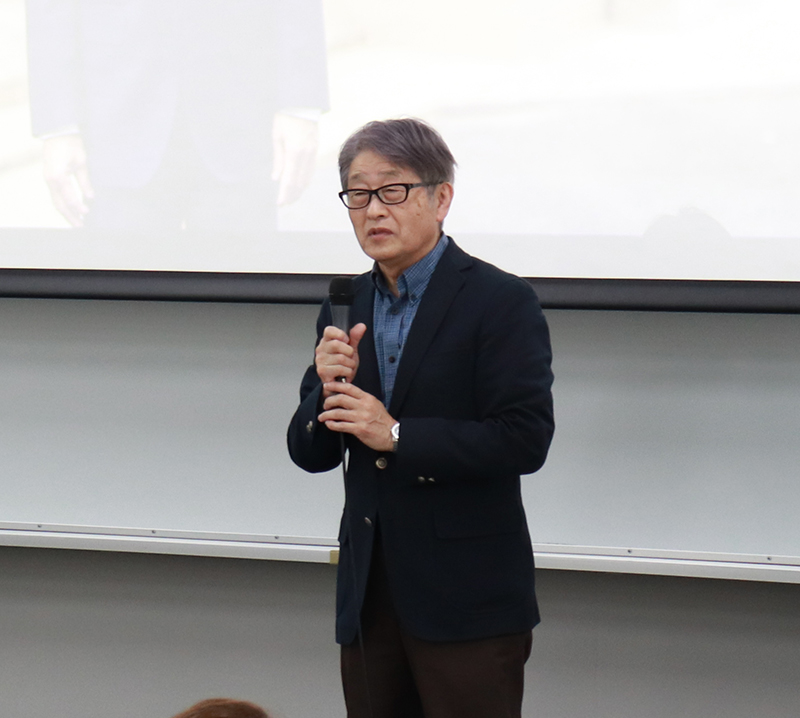 ご来場のみなさんへ本学学長 山田良治の挨拶からスタートし、入試広報課職員からのプログラムの説明、小槻文洋教授の大学紹介、オープンキャンパスを盛り上げる学生広報アンバサダーの紹介をおこないました。