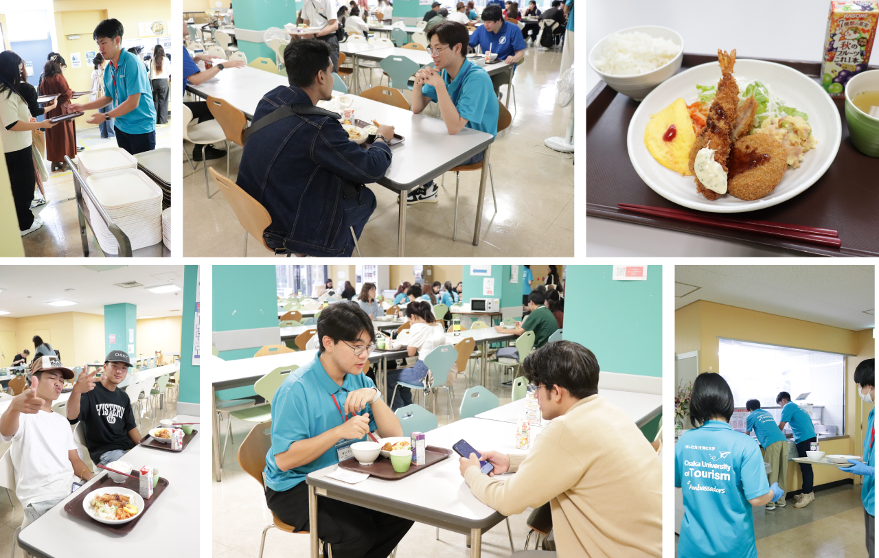 学食|ランチ体験学生食堂では、ホスピタリティ溢れる学生広報アンバサダーと一緒に気さくなランチタイム。「学生との距離が近くて、あっという間に打ち解けて楽しかった!」という感想も多く、和やかな雰囲気に包まれていました。 また、この日のスペシャルメニューは「ミックスフライランチ」!熊取町のローカルグルメ「くまコロ」(里芋のコロッケ)をお楽しみいただきました。 本学ではランチプレートのほか、野菜のカレーやうどんも毎回ご用意しています! 「おいしくて、栄養バランスも良さそうなので、通うのが楽しみ!」と、学食体験は毎回ご好評をいただいています。