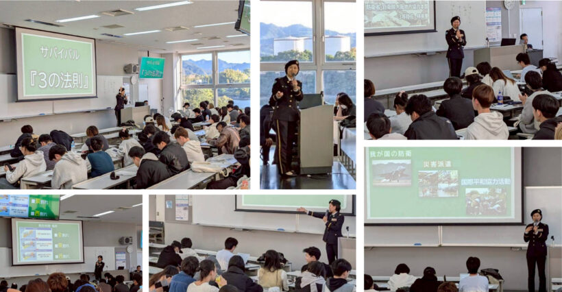 筆者は市民リテラシー科目の中で憲法を担当しており、今年度は2025年10月23日の第5回授業において、社会権と参政権を概説し、防衛省・自衛隊から講師を招き、社会権たる生存権保障の表れとしての災害派遣特別講義「災害に備える-いざというときに行動できる備え」を実施しました。